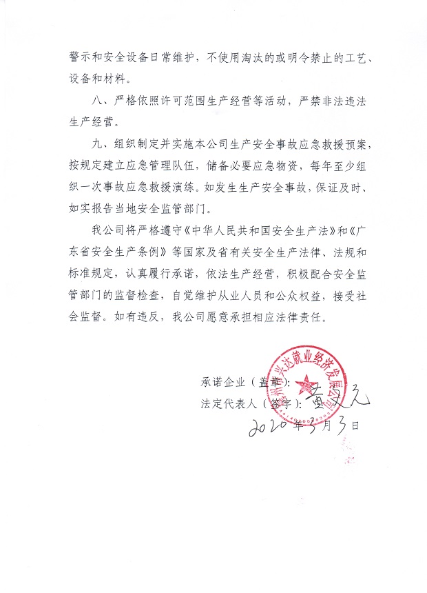 本公司承諾安全生產!